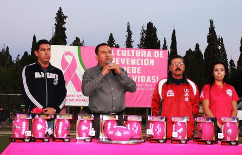El campo de usos múltiples “Óscar Asiaín Ruiz” de la ciudad Deportiva, fue el escenario que se vistió de color rosa, donde el principal motivo fue, convocar a los equipos varoniles y femeniles que participan en la temporada 2013 de la Asociación Estatal de Tochito para entregarles el balón rosa, como símbolo del compromiso en la Lucha contra el Cáncer de Mama.
